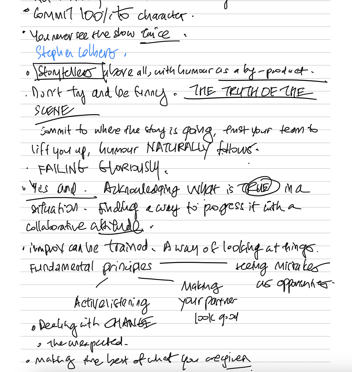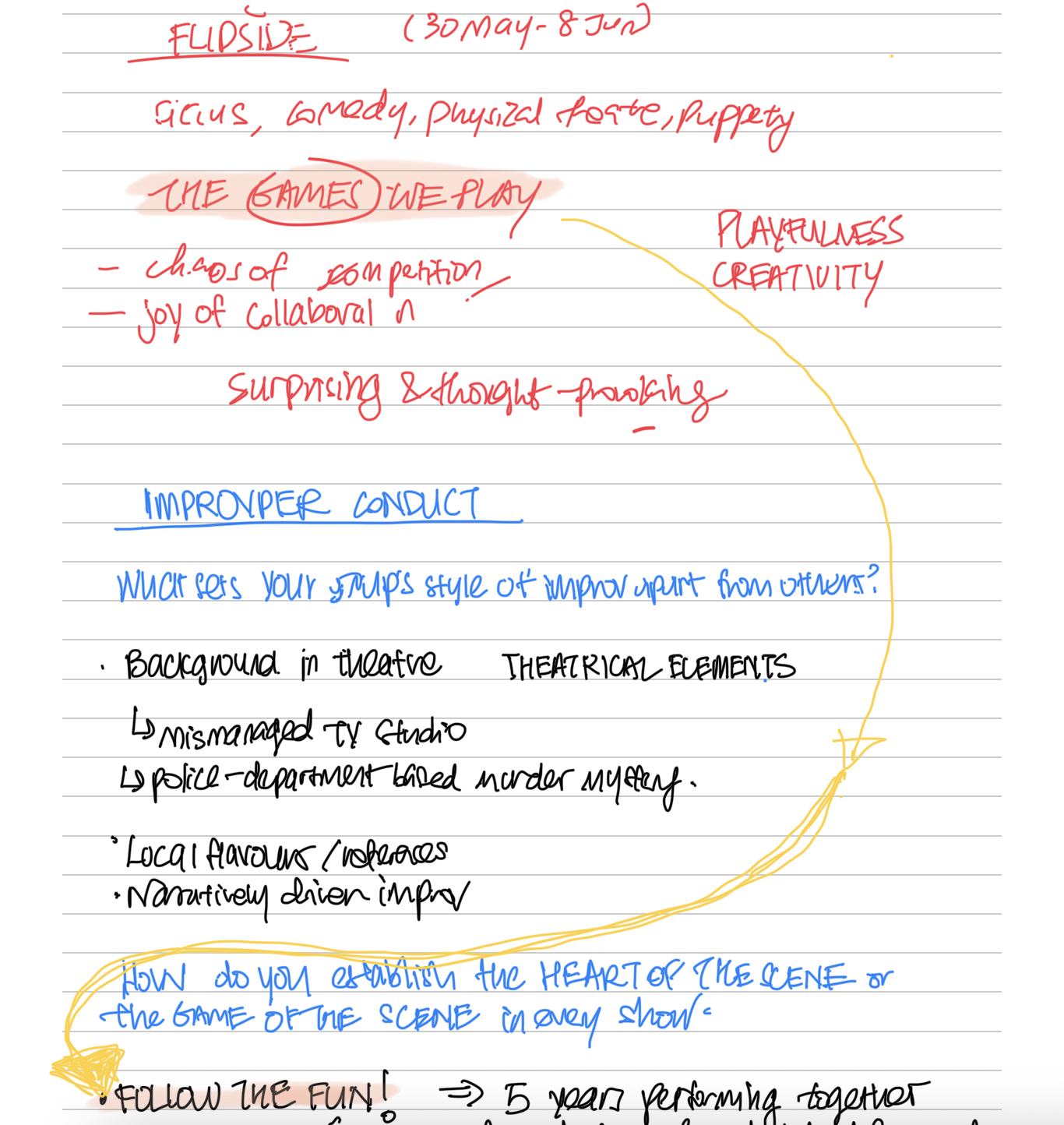 To write this article, I did desktop research about the history of improv, read articles, and watched interviews about famous improvisers talking about what improv is all about. I also drew on my personal experience as someone learning improv in Singapore to explain the mechanics and forms of improv.